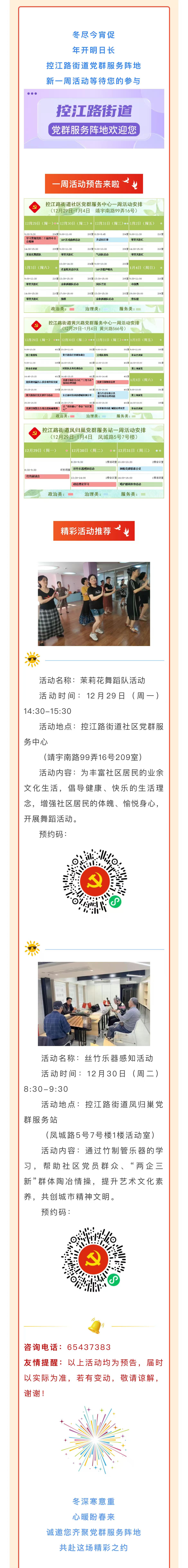 时光荏苒 冬深岁晚——杨浦区控江路街道党群服务阵地新一周活动预告