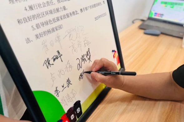 作为活动核心环节,现场组织家政服务人员签订《杨浦区家政行业绿色服务承诺书》,以信用承诺形式明确其在服务过程中落实垃圾分类、倡导绿色生活的责任义务。