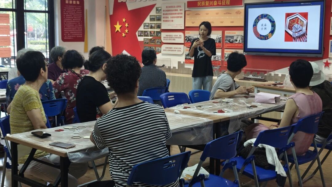 非遗体验活动同样热闹,“宋锦冰箱贴DIY”活动吸引社区阿姨们踊跃参与。大家在老师引导下观察宋锦细密锦线与纹理,深入了解纹样文化意趣。制作时,大家反复调整锦片角度,用镊子细心粘贴边角,将匠心融入每一枚作品。居民从非遗“旁观者”转变为“创造者”,让传统技艺与匠心精神融入寻常生活。