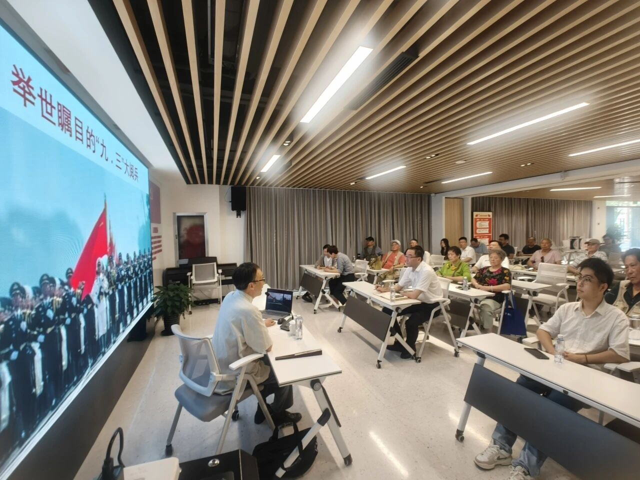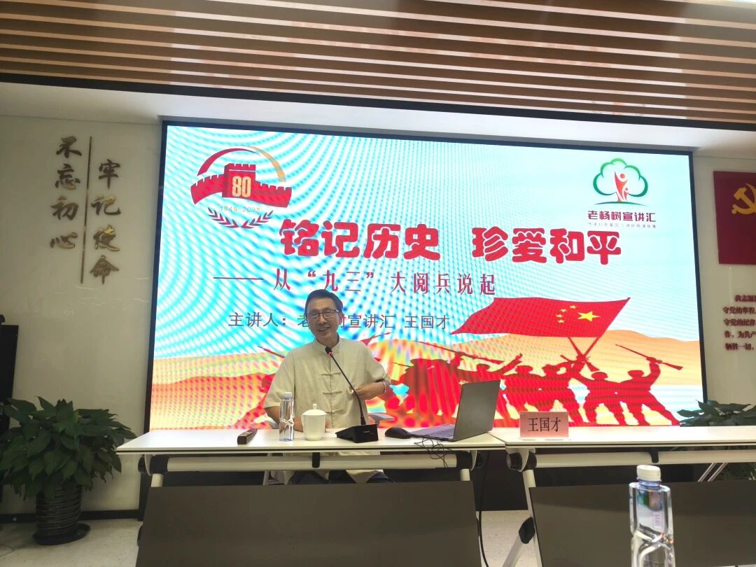 为纪念中国人民抗日战争暨世界反法西斯战争胜利80周年,近日,龙江路83号党群服务中心阵地内掌声阵阵。“老杨树宣讲汇”成员王国才老师用沪语方言,以“九三阅兵 盛大庆典”为主题,结合平凉地区红色历史记忆,讲授了一堂生动而深刻的主题党课,现场气氛热烈。