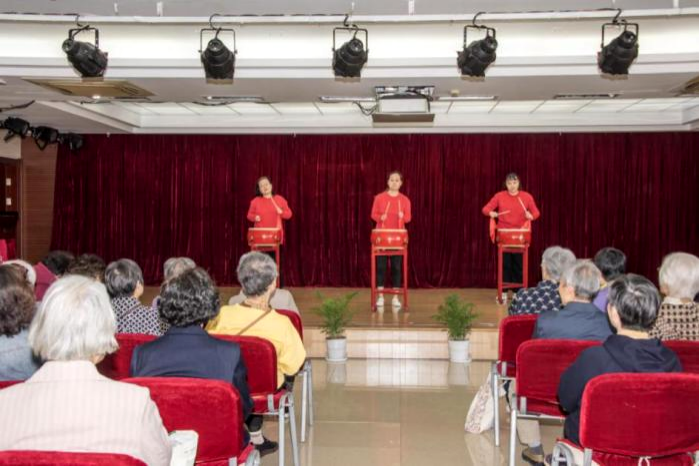 三阳基地学员以激昂鼓乐《登高》拉开演出序幕。学员们精神饱满、表演铿锵有力,展现出积极向上、自强不息的精神风貌,赢得台下长者们热烈掌声。