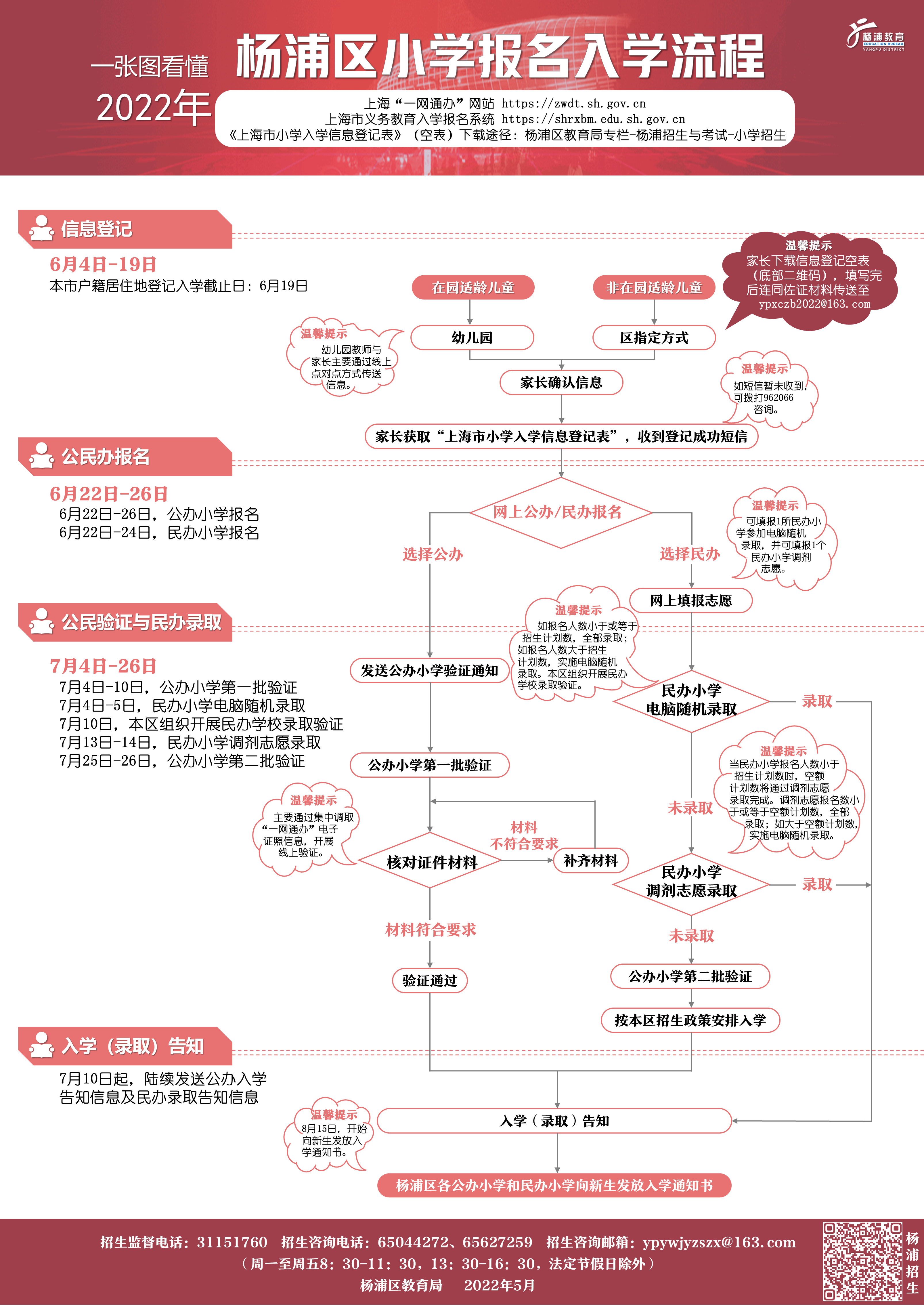 一图看懂2022年杨浦区小学报名入学流程